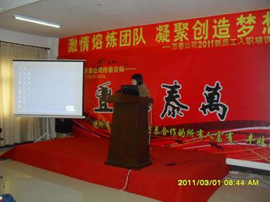 培訓開始,公司的幾位部門主管上臺致辭,向新員工表示歡迎。希望員工們通過這次培訓,能逐步加深對企業(yè)的熟知度和認同感,在各自的崗位上勤懇努力,為企業(yè)發(fā)展注入了新的活力。人力資源部的老同事們則為大家詳細介紹了萬泰的發(fā)展歷程,公司文化,公司環(huán)境,未來發(fā)展規(guī)劃等等,并對萬泰產(chǎn)品的行業(yè)應用做了簡單的介紹。
